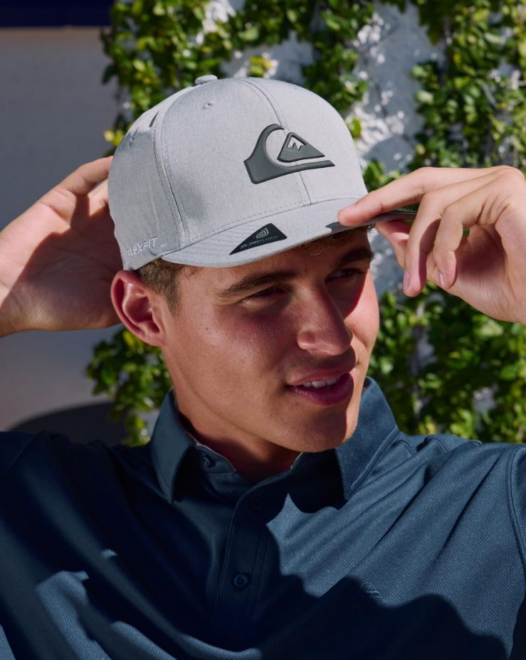 Product Description Brand: Quiksilver Product: Men's Amped Up Cap Pattern: Plain Composition: Polyester Trim Detail: Embroidered logo trim Cap Style: Flex cap Peak Profile: Curved peak