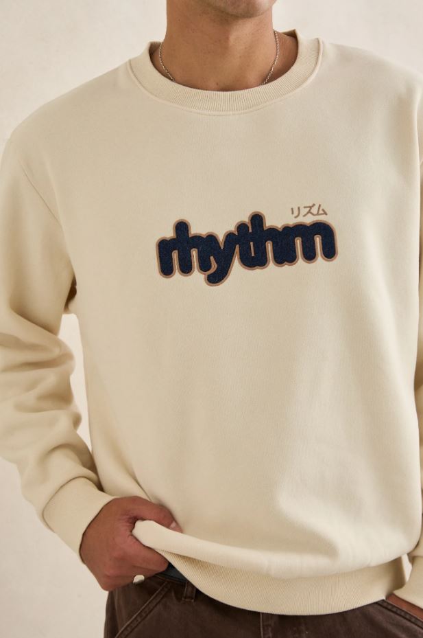 Applique Fleece Crew - Natural