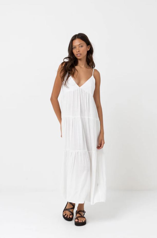 Decrease Quantity of Classic Tiered Midi Dress - White