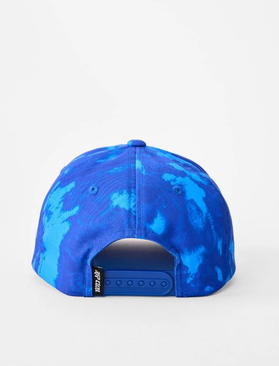 Cosmic Surfing Snapback Cap for Boys is constructed from 70% polyester, 30% cotton with high-profile fit, OSFM kids 1–8 head circumference, woven badge, curve peak, and structured design for surf-ready style.