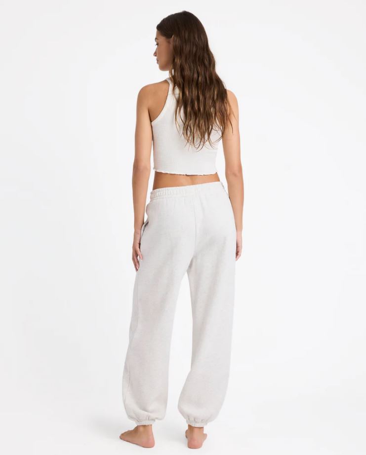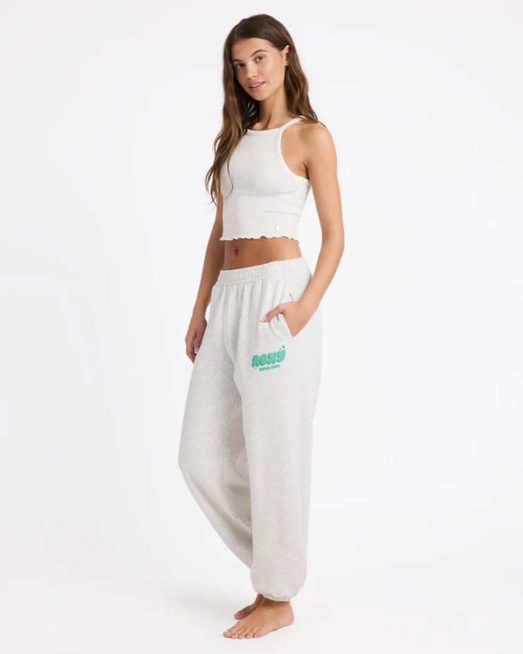 Product Description Fleece track pant Elastic waist Elastic hem Side seam pockets Puff print on left leg at pocket