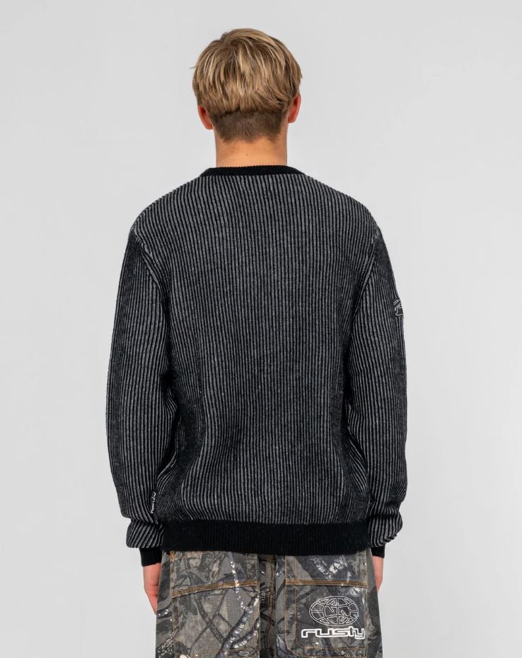 Decrease Quantity of Cubes Cord Knit Sweater - Black