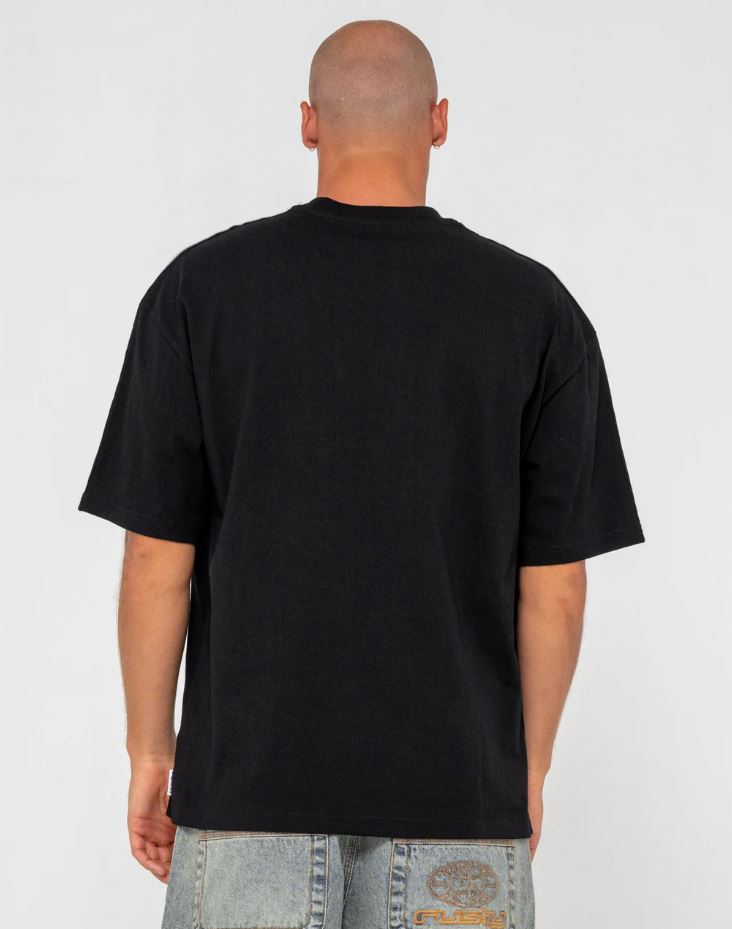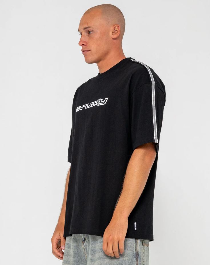 Product Description Oversized R2K Fit Tee With Knitted Overarm Tape And Rusty Chest Print. 100% Cotton Jersey Oversized Fit (R2K) Y2K Style Printed Short Sleeve