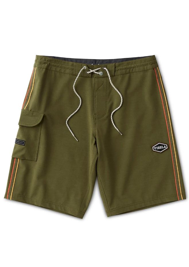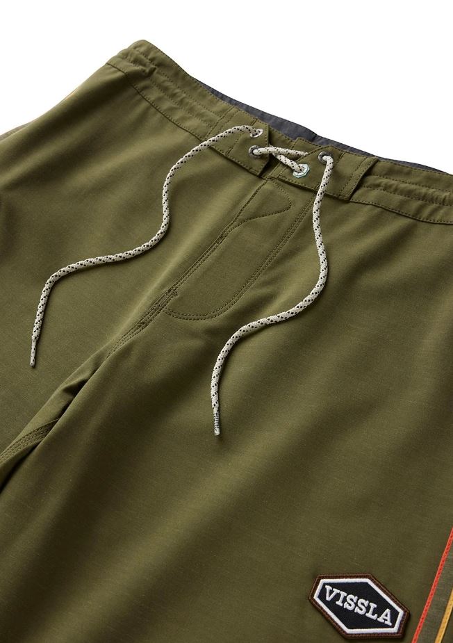 Built for long sessions in and out of the water, the Long Sets Boardshort blends performance and sustainability. Made with 4-way stretch fabric using coconut fibers, recycled polyester (Repreve), and cotton, it offers maximum comfort and flexibility. Designed with an early 2000's Y2K-inspired fit, it features a caliper scalloped hem, a side pocket with an integrated key rope, and a novelty Vissla embroidered patch at the side. With a longer 21” outseam, these boardshorts deliver both function and style for every swell.