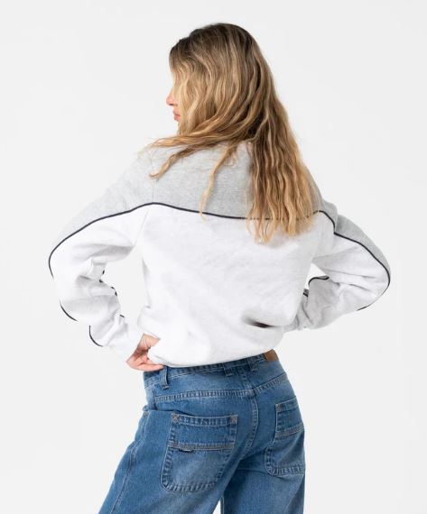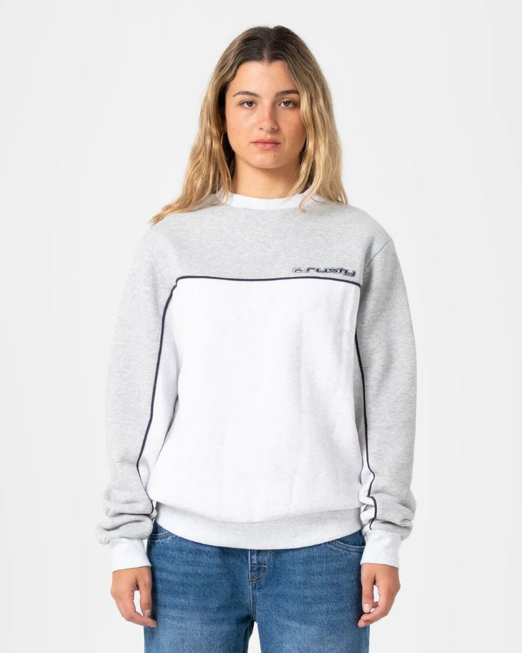 Relaxed Crew Neck Fleece With Contrast Panels Front Logo Embroidery. 58% Polyester / 42% Cotton Fleece (After Wash)