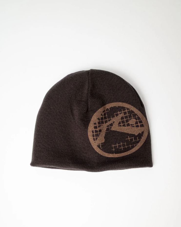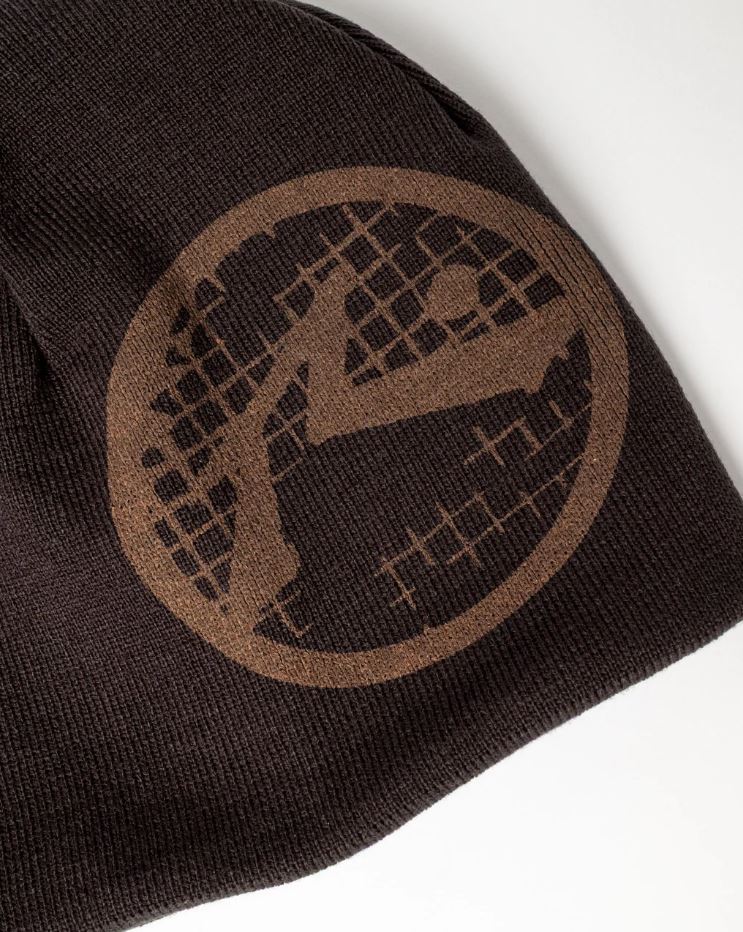 Reversible Cuffless Beanie With Rusty Logo Embroidery And Oversized Logo Print. 100% Soft Acrylic Yarn