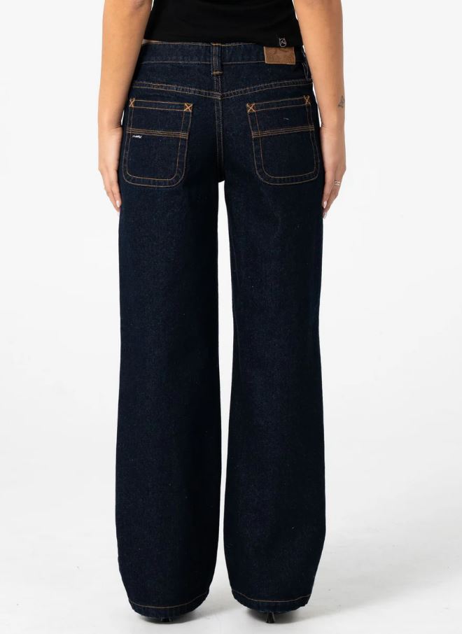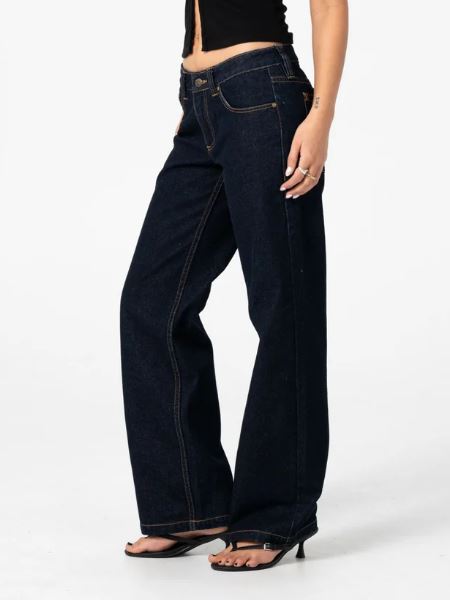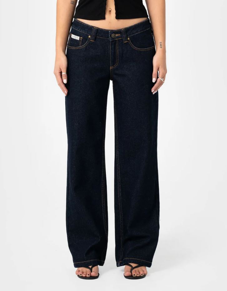 Low Rise Straight Leg Fit Jean With 5 Pkt Detailing And Belt Loops. 100% Cotton Indigo Denim